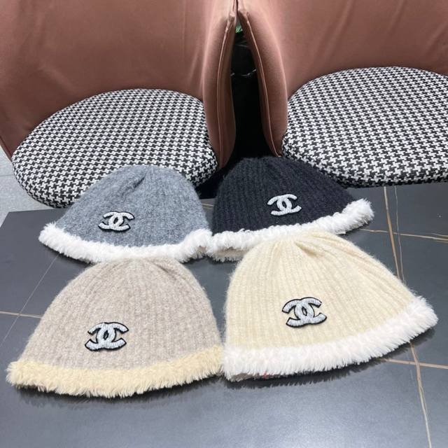 Chanel Chanel 2025 winter knitted wool bucket hat women's autumn and winter warm face small ear protection wool hat knitted bucket hat
