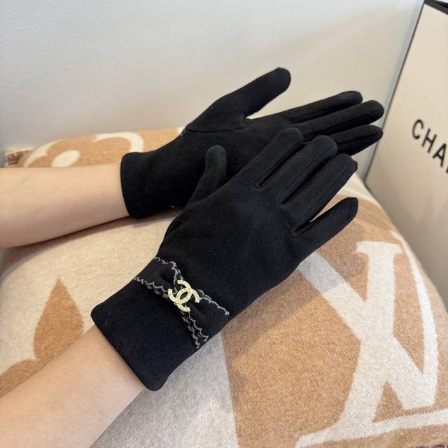 Chanel Chanel counter new wool gloves, fashionable gloves, autumn and winter warmth plus fleece lining, super fairy hand-held, super comfortable and soft, versatile! One size