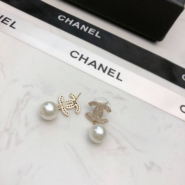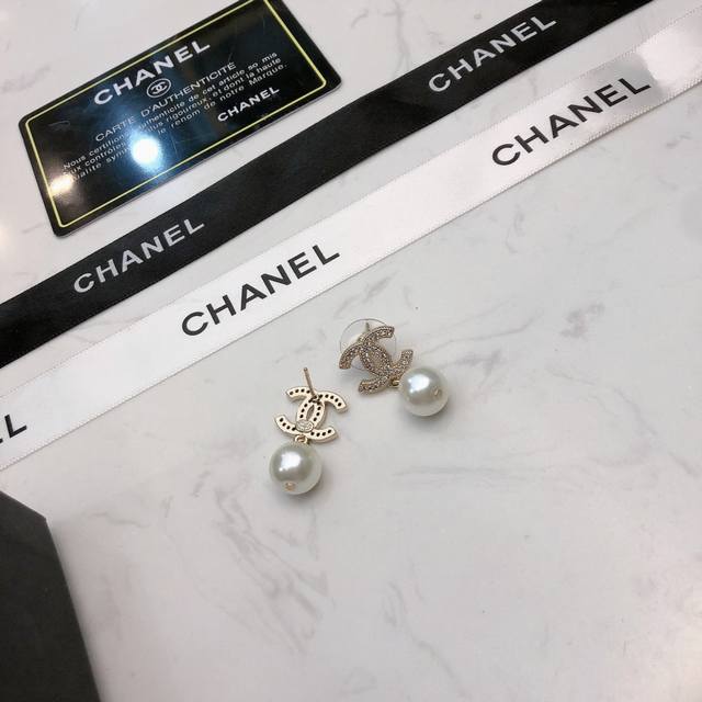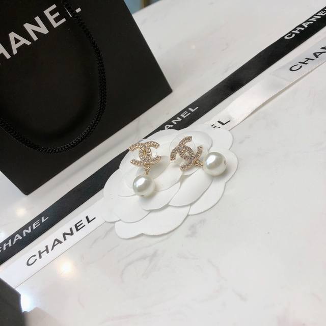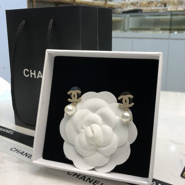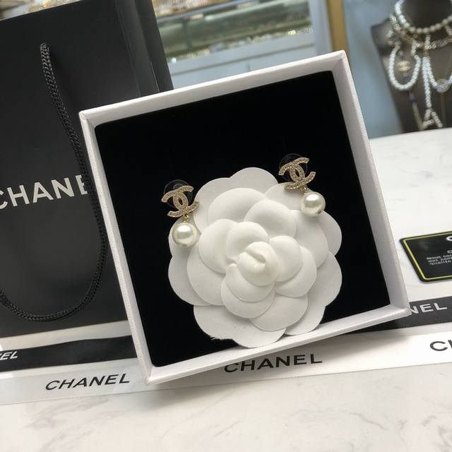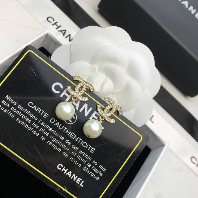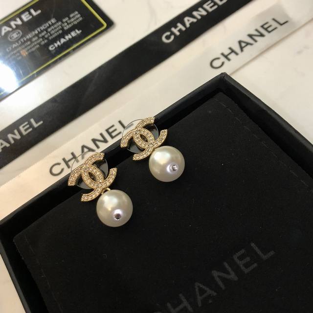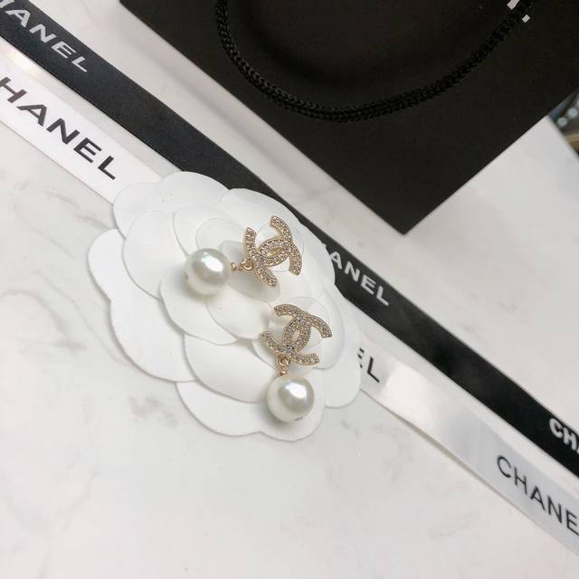 Chanel Chanel earrings! Original logo details, best-selling model, the highest quality version on the market! 1:1 counter style mold, original brass material! Chanel classic logo diamond-encrusted Chanel pearl earrings are a must-have for goddesses, super slimming face