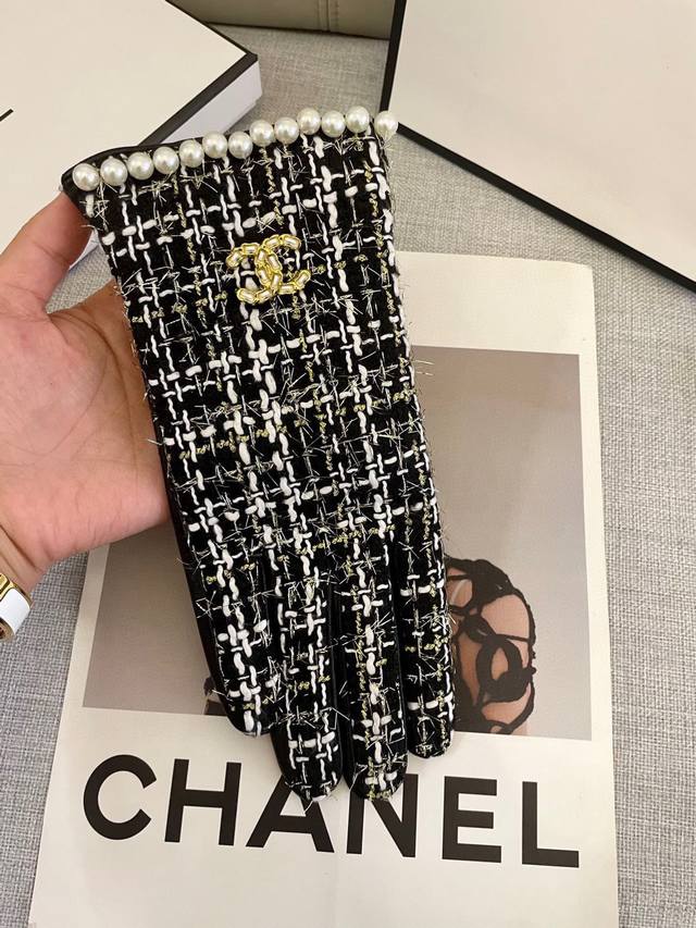 Chanel Chanel European new top original women's high-end half-finger gloves Chanel Royal woolen gloves top workmanship no detail is missed authentic open version purchasing level with Chanel full set packaging size: L