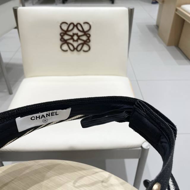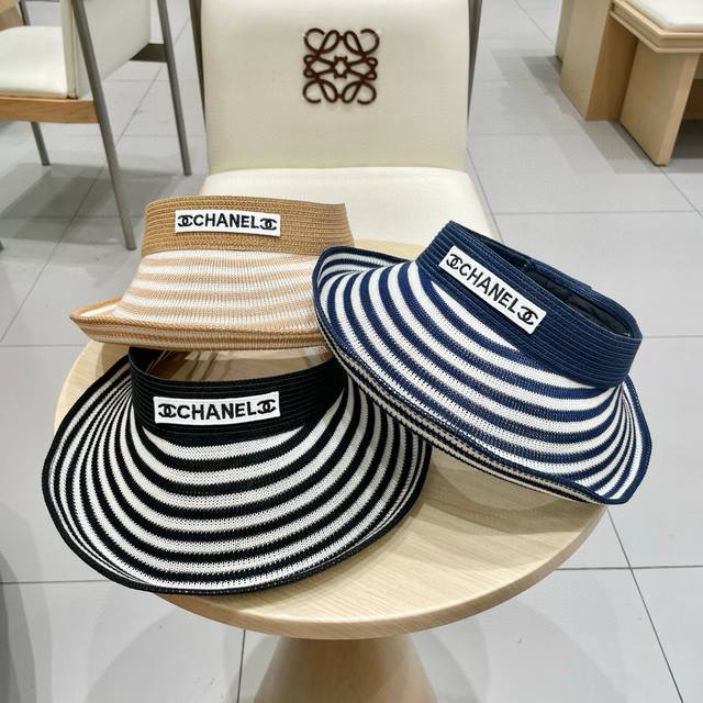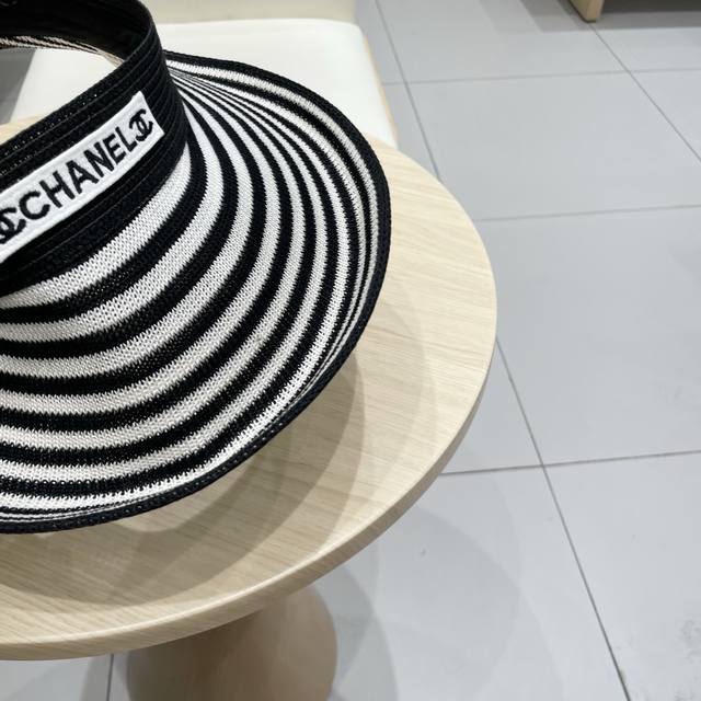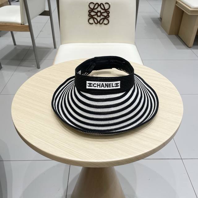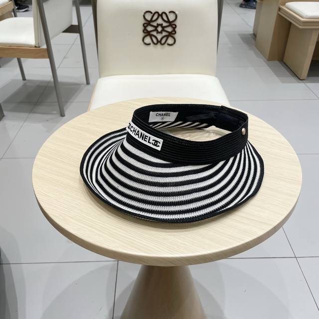 Chanel Chanel large brim breathable hollow top hat hat for summer travel with curled edges, foldable stripes, exported to South Korea, high-end sunshade