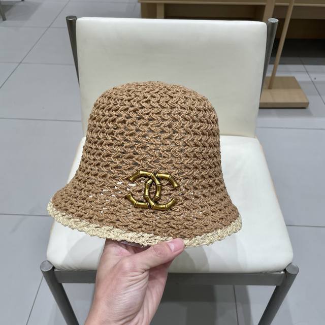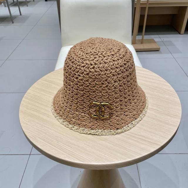Chanel 2025 New Arrival Mini Chanel-Style Straw-Woven Vacation-Style Bucket Hat,