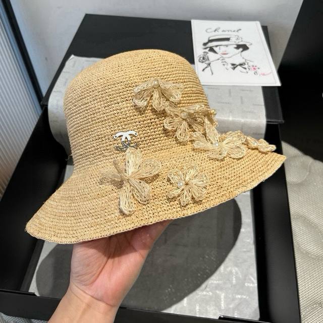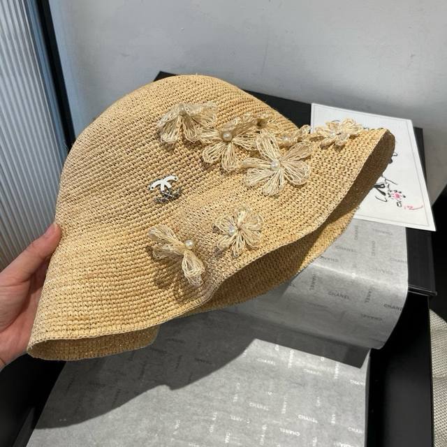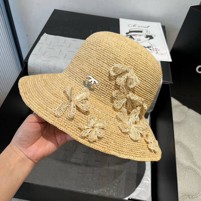 / Chanel Chanel new Raffia straw hat, pure hand-crocheted, lantern straw hat, supe