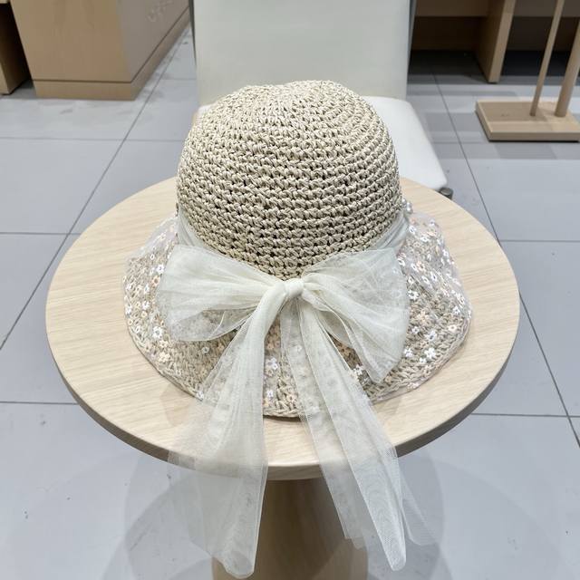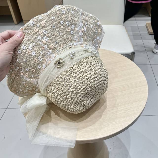 Chanel Chanel New Arrival Lace-Up Straw Woven Lampshade Hat~