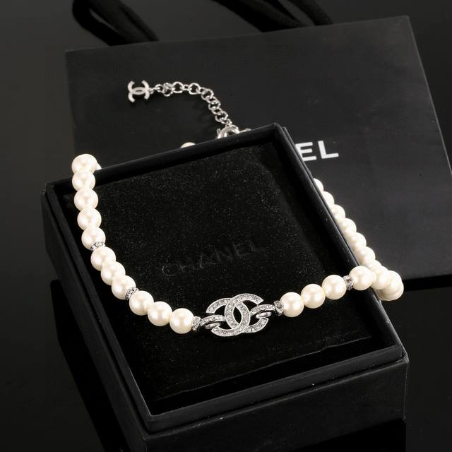 Chanel Chanel pearl necklace, high-end quality, the same material as the counter, exquisite workmanship, heavy version, simple and elegant, especially gentle. The classic double C is embellished with Swarovski rhinestones, Blingbling super sparkle, luxurious and noble. Necklace