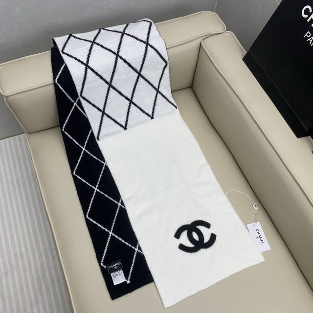 Chanel Chanel three-dimensional double C classic diamond design double-sided different colors new popular series cashmere knitted scarf original seamless trimming process, with three-dimensional letter weaving to highlight the brand's high-end image ~