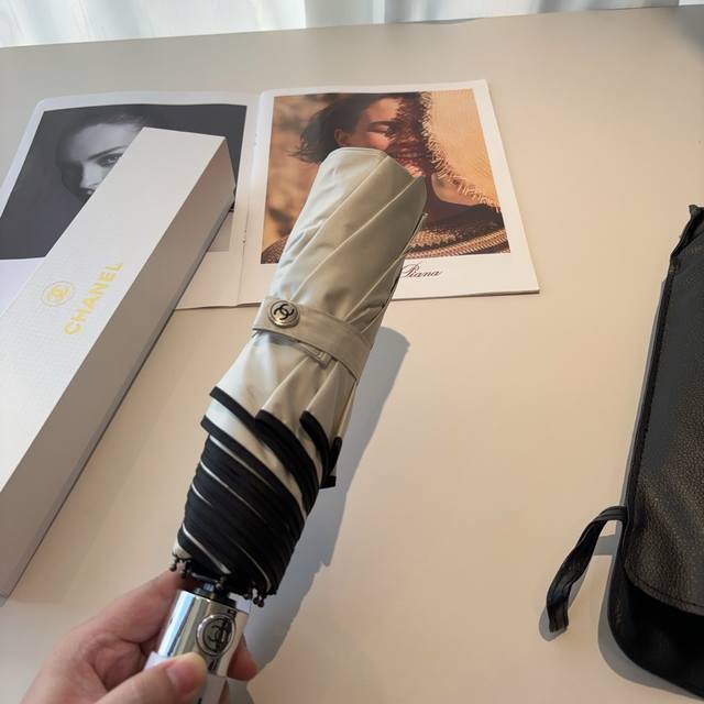 Chanel Chanel tri-fold automatic folding umbrella uses Taiwan imported UV anti-u