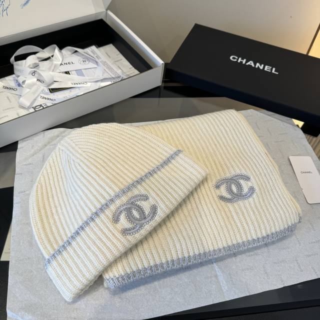 Chanel classic scarf and hat set, 100% cashmere, warm and super comfortable~ A winter essential for looking younger~ You're missing a set this winter~ Warm and stylish! Can be worn as a couple's set! Complete with anti-counterfeiting tags and tags! Many styles available, welcome to choose!