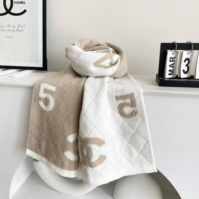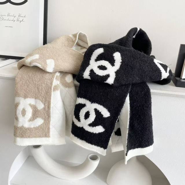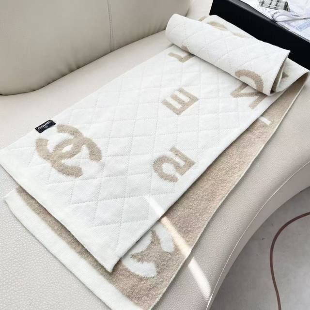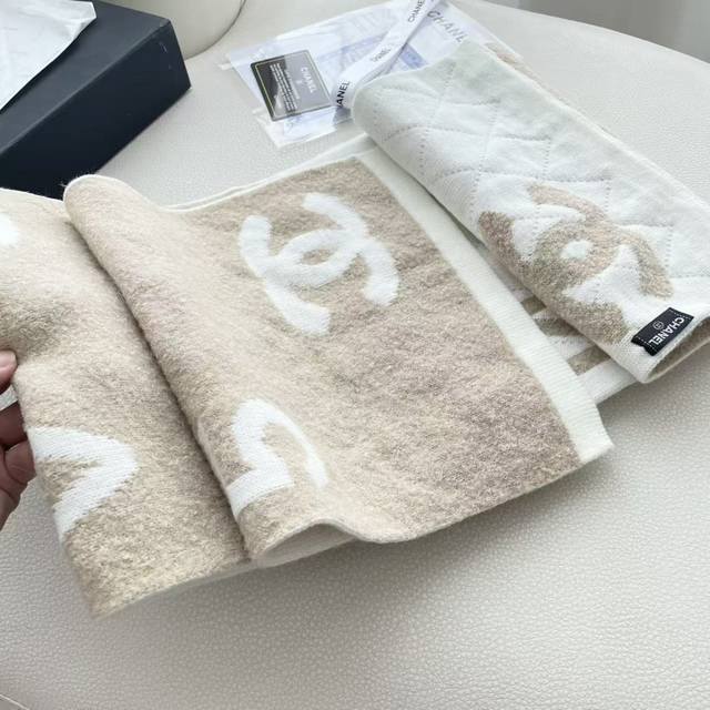 Chanel double-sided knitted scarf, a top-tier, high-end, exquisitely beautiful and versatile piece, limited edition in boutiques. Even with money, it's very difficult to order this top-quality cashmere knitted scarf. The entire scarf is hand-knitted to order, of superior quality. 35*200cm, soft and comfortable texture.