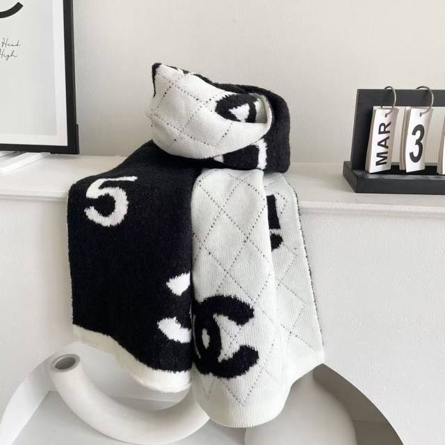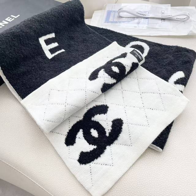 Chanel double-sided knitted scarf, a top-tier, high-end, exquisitely beautiful and versatile piece, limited edition in boutiques. Even with money, it's very difficult to order this top-quality cashmere knitted scarf. The entire scarf is hand-knitted to order, of superior quality. 35*200cm, soft and comfortable texture.