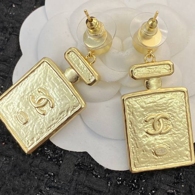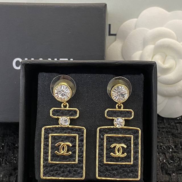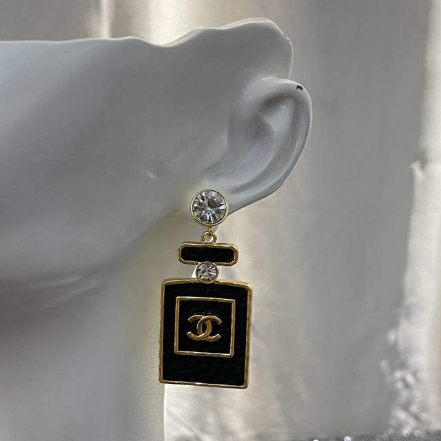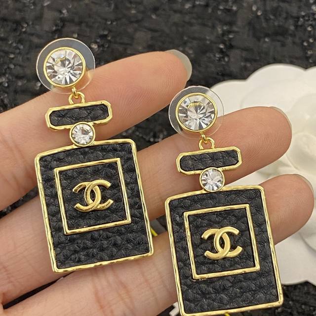 Chanel earrings are hot-selling and are back in style! Chanel 23 black and gold lambskin rhinestone perfume bottle earrings. Leather texture and black gold, super textured! Versatile and beautiful. Retro and fashionable, they look cool and stylish on your ears.