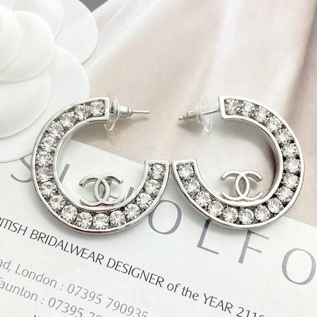Chan 23 ultra-delicate rhinestone C-ring earrings