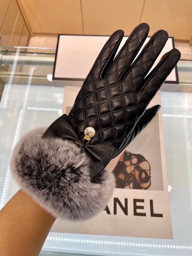 Chanel Fall/Winter Slippery Rabbit Fur Gloves - Worth comparing with similar styles, but of significantly different quality. Superior quality compared to other products on the market. Made of imported top-grade sheepskin, slippery rabbit fur lining, classic and timeless design. A great buy for those who like half-finger gloves; this quality means you can use them this year and next year too!