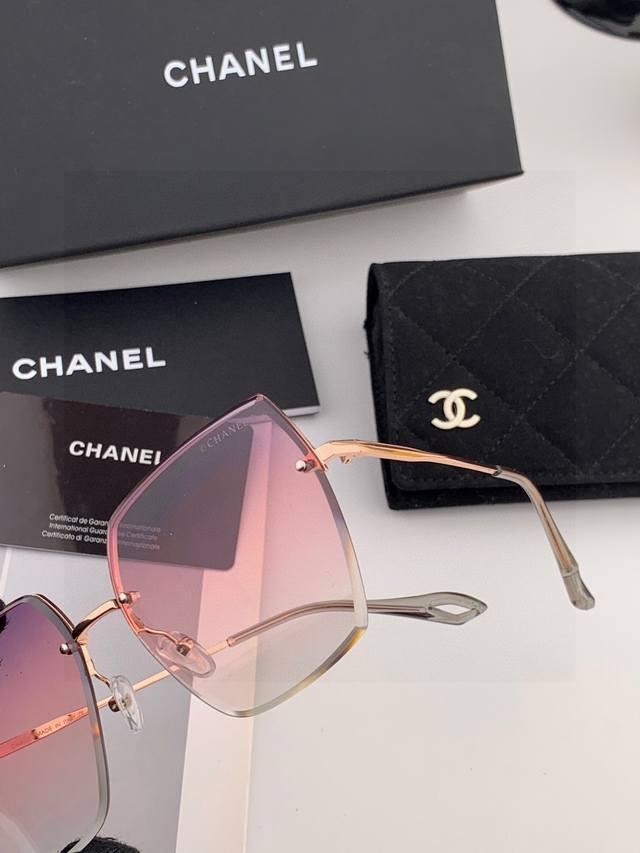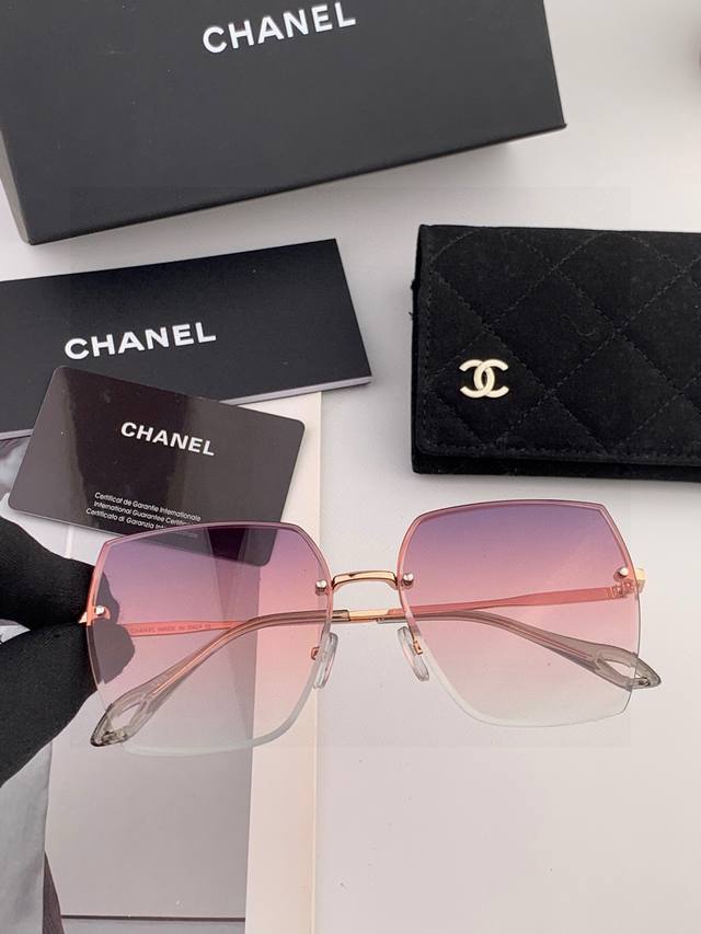 Chanel Fashion Frameless Sunglasses Lenses Top Luxury Quality [Kiss] Extraordinary Elegance Women's Driving Sunglasses [Love] Model: Ch5333