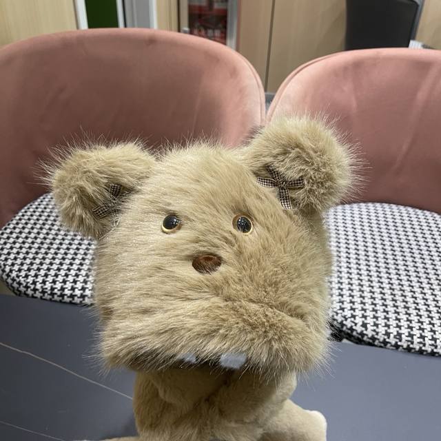 Chanel fluffy cute bear ear bow plush hat and scarf two-piece set, thick and war