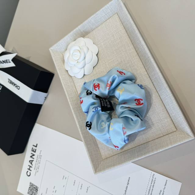/ Chanel hairband, satin fabric, blue, pink and black