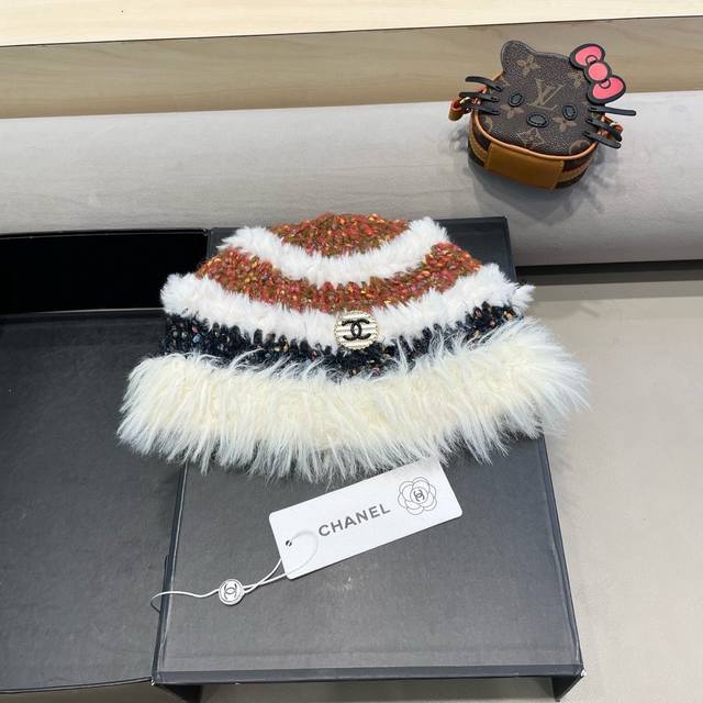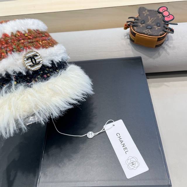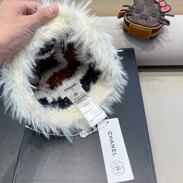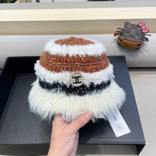 Chanel handmade crochet wool hat for women autumn and winter new style contrast color face small cold-proof warm plush knitted fisherman hat
