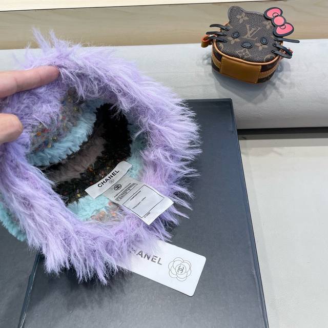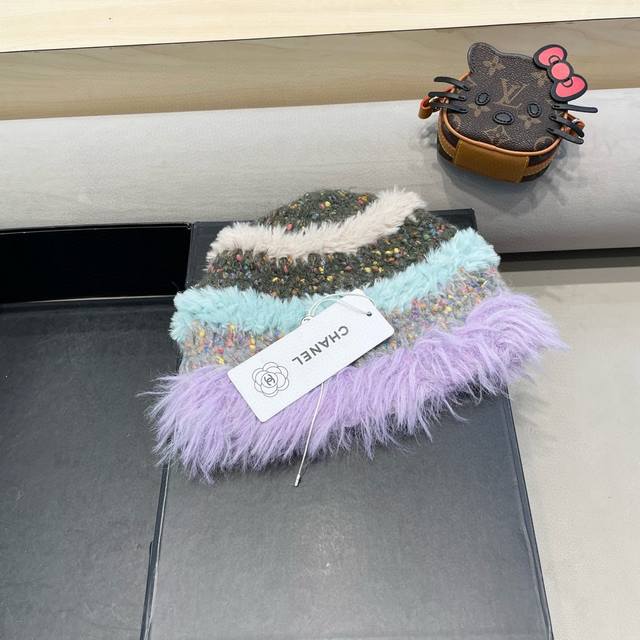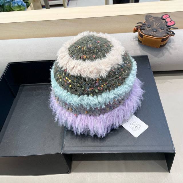 Chanel handmade crochet wool hat for women autumn and winter new style contrast color face small cold-proof warm plush knitted fisherman hat
