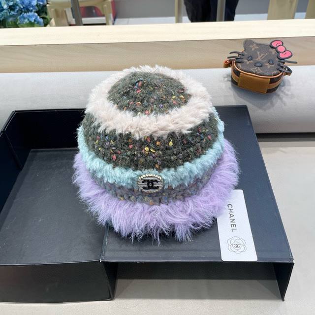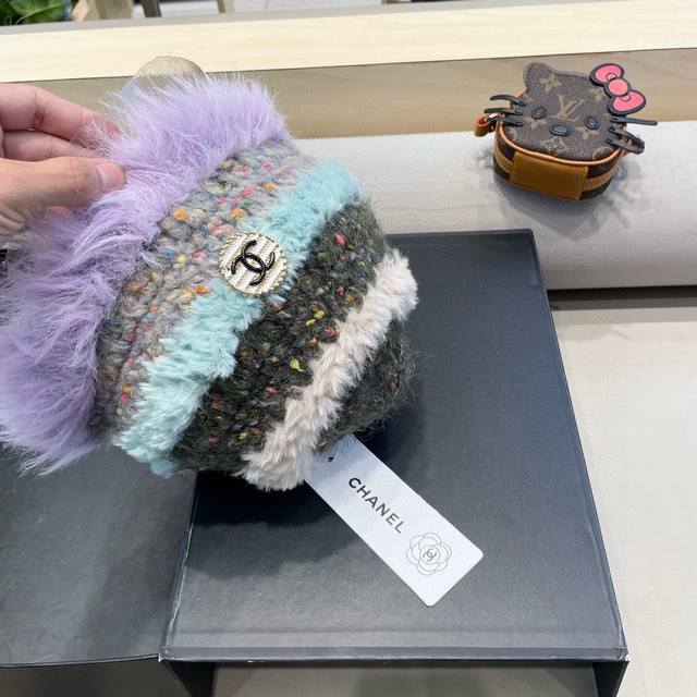/ Chanel handmade crochet wool hat for women autumn and winter new style contrast