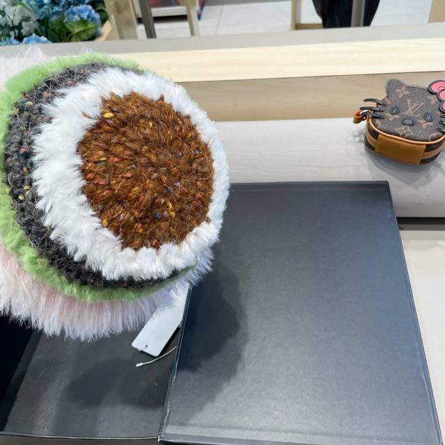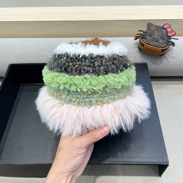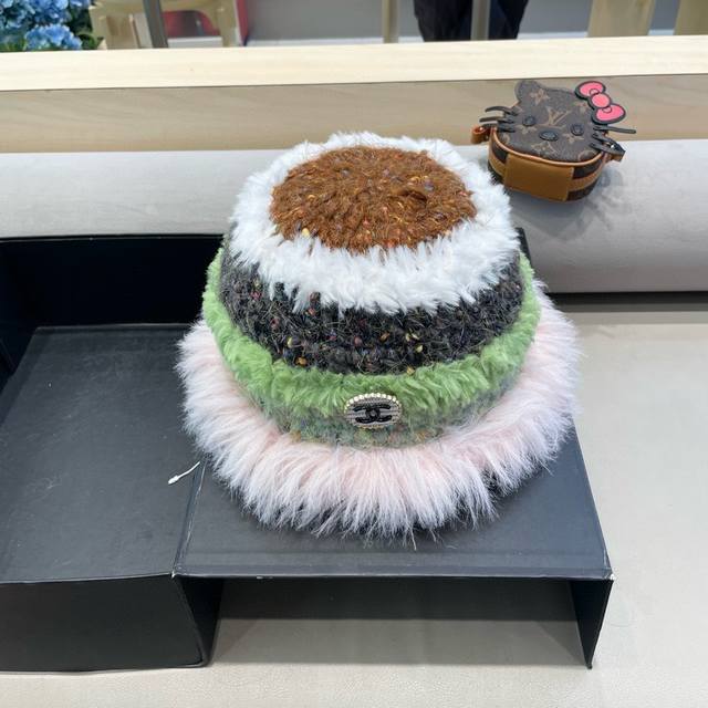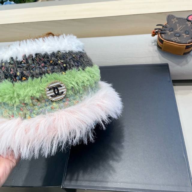Chanel handmade crochet wool hat for women autumn and winter new style contrast color face small cold-proof warm plush knitted fisherman hat