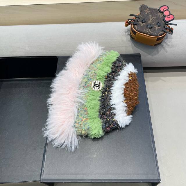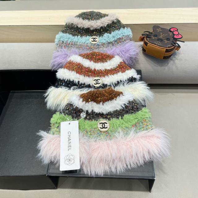 / Chanel handmade crochet wool hat for women autumn and winter new style contrast