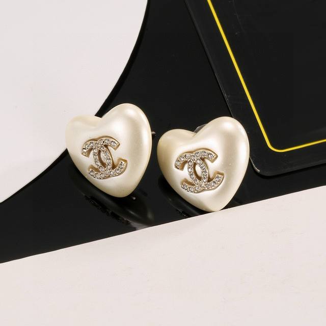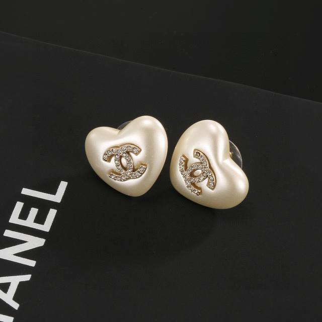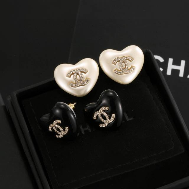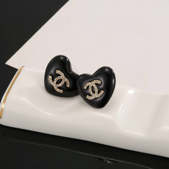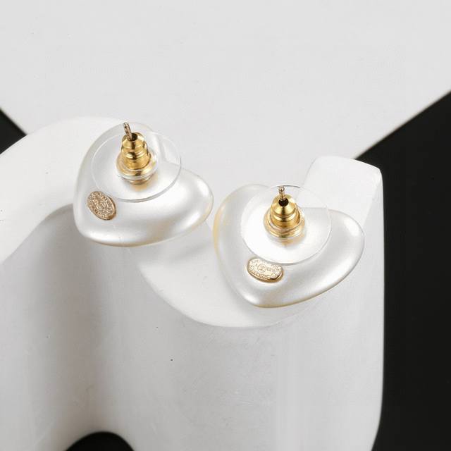Chanel heart-shaped earrings flatter your face. Surrounded by a gold metal rim, they create a mysterious, sophisticated, and retro feel. The double C metal logo and contrasting resin colors are classic and versatile! Earrings