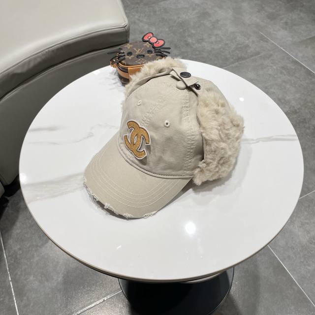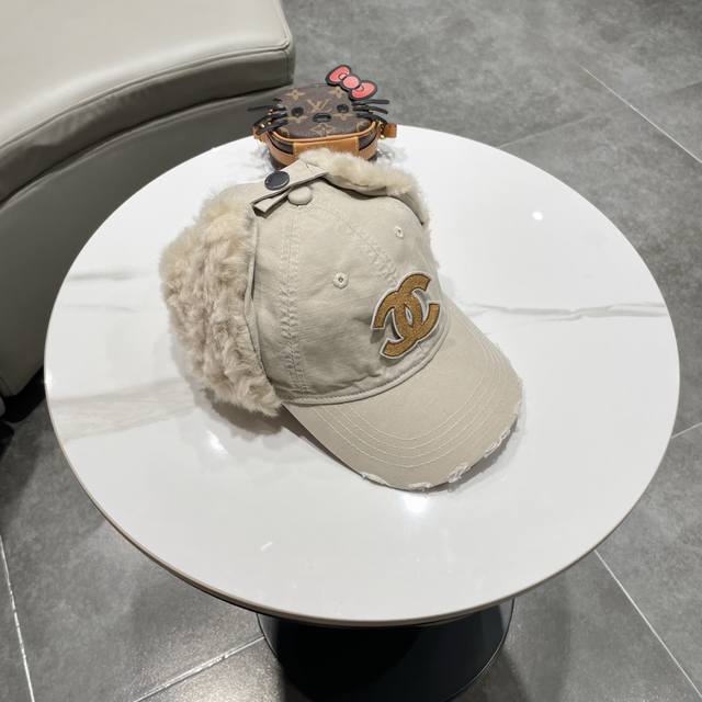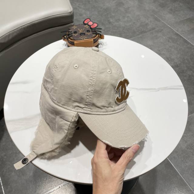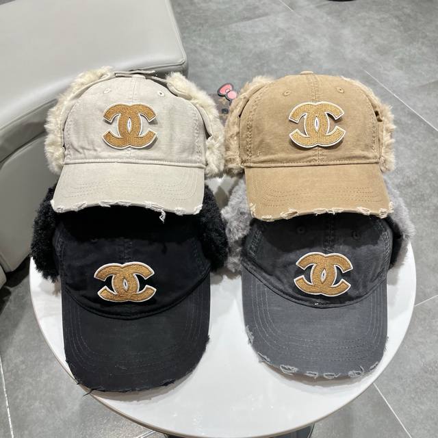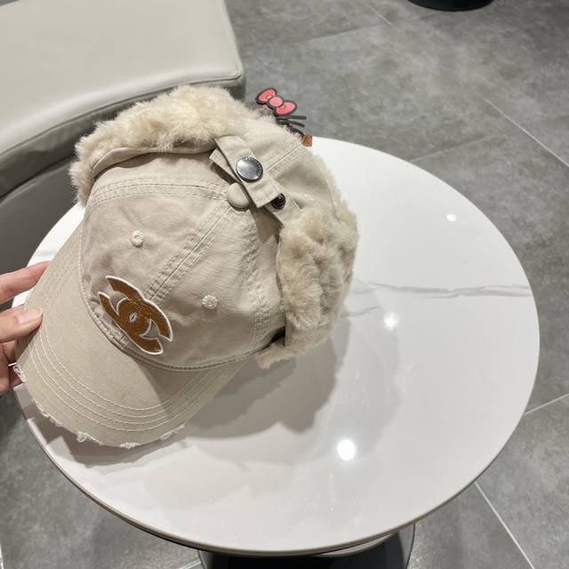 / Chanel High-Quality Distressed Texture Fleece-Lined Earflap Hat for Women, Winte