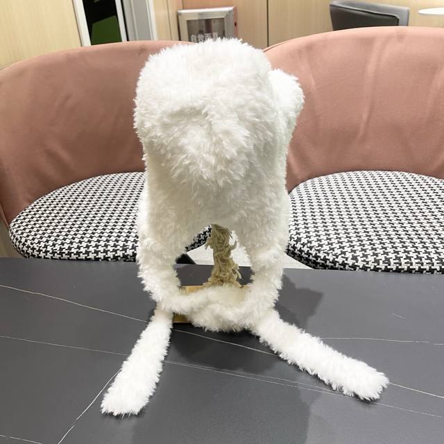 Chanel Japanese Style Cartoon Plush Bear Ear Tie-Up Hat for Women, Autumn/Winter