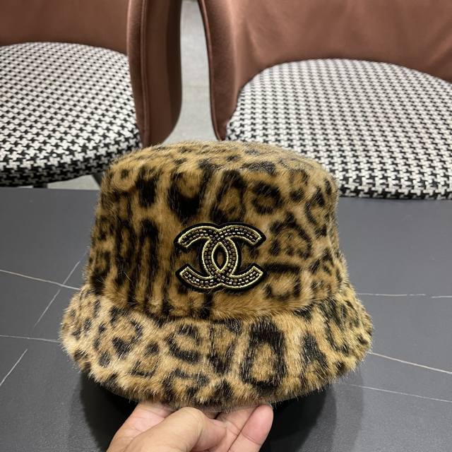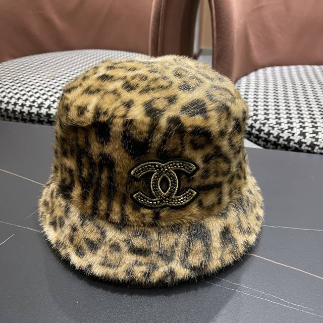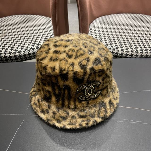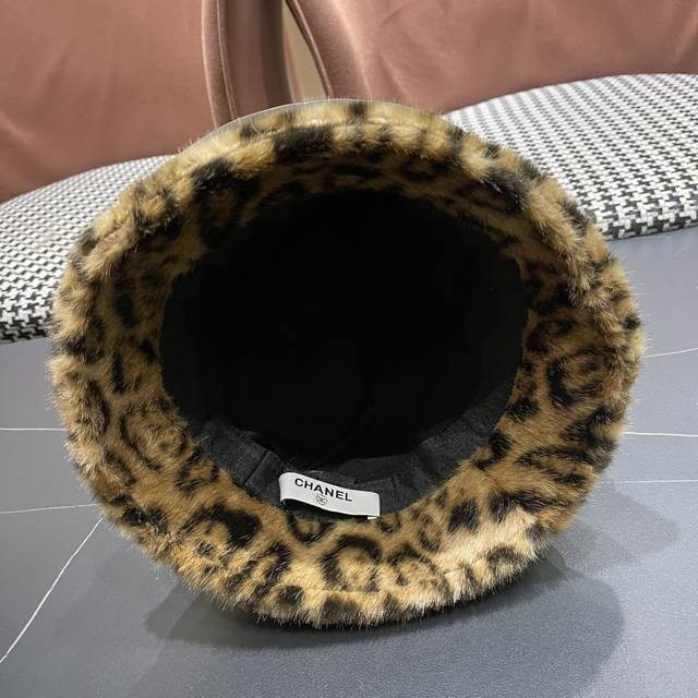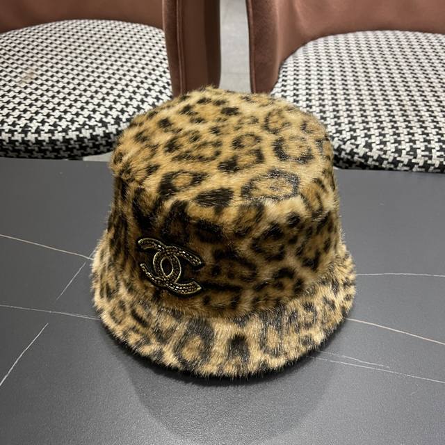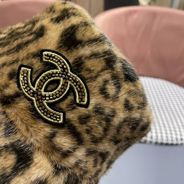 / Chanel Korean Style Leopard Print Plush Hat Women's Autumn and Winter New Fisher
