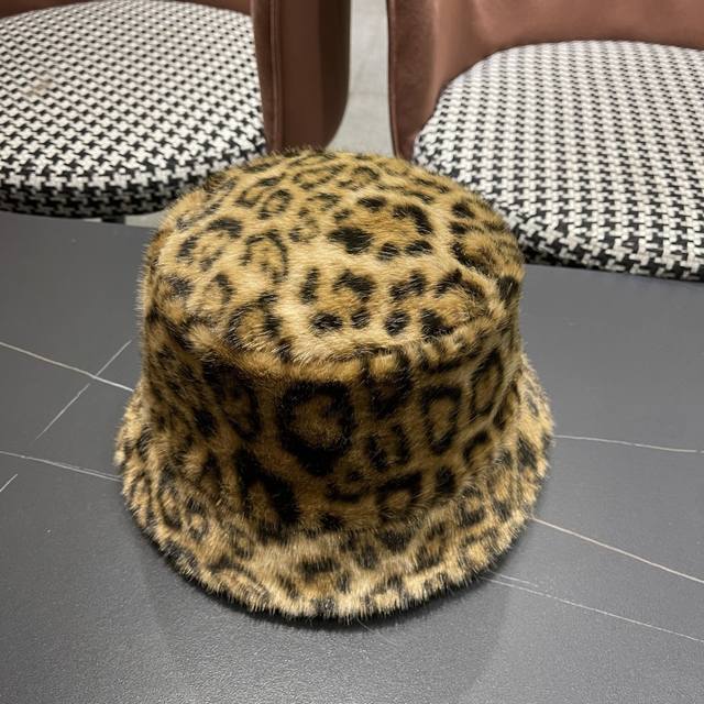 Chanel Korean Style Leopard Print Plush Hat Women's Autumn and Winter New Fisherman Hat, Warm and Thick, Retro Style Bucket Hat, Trendy