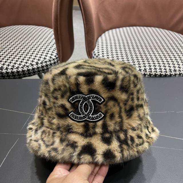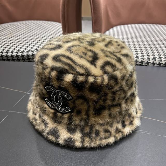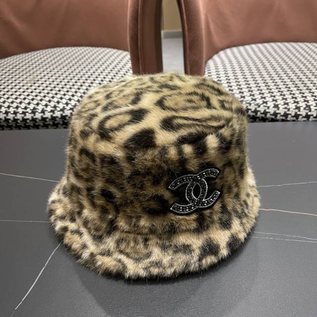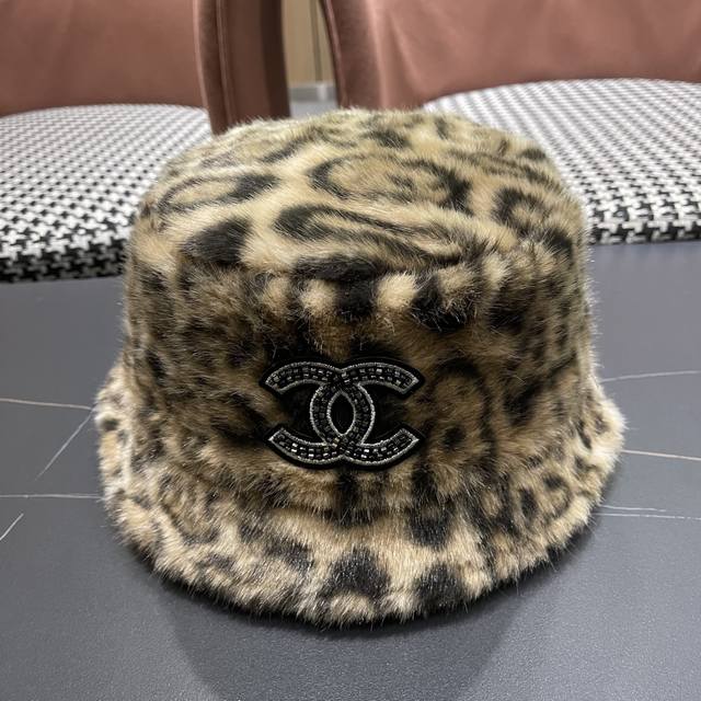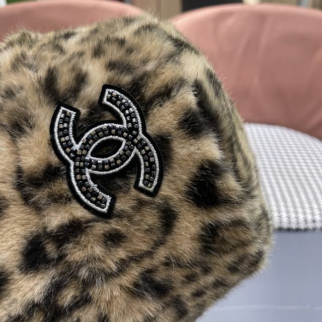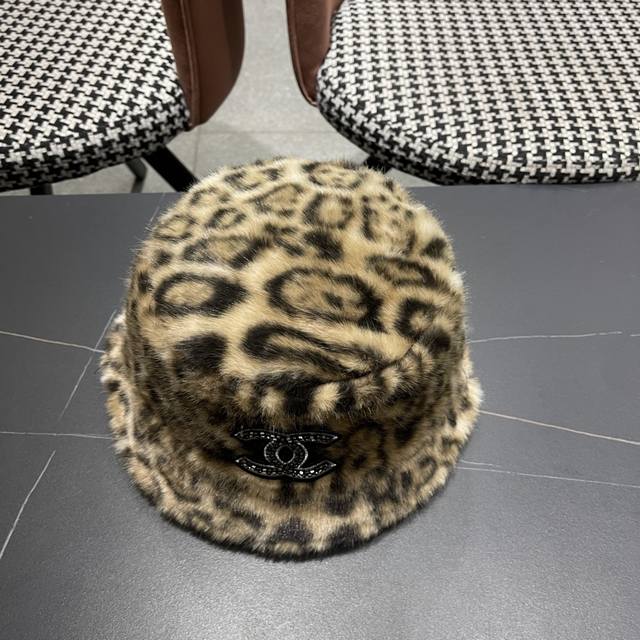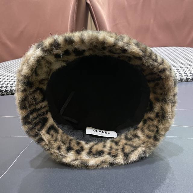 / Chanel Korean Style Leopard Print Plush Hat Women's Autumn and Winter New Fisher