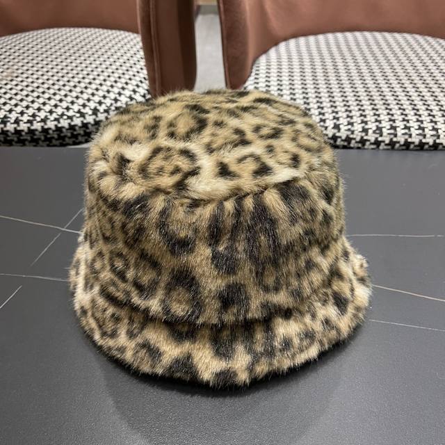 Chanel Korean Style Leopard Print Plush Hat Women's Autumn and Winter New Fisherman Hat, Warm and Thick, Retro Style Bucket Hat, Trendy