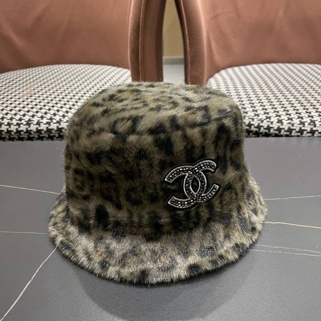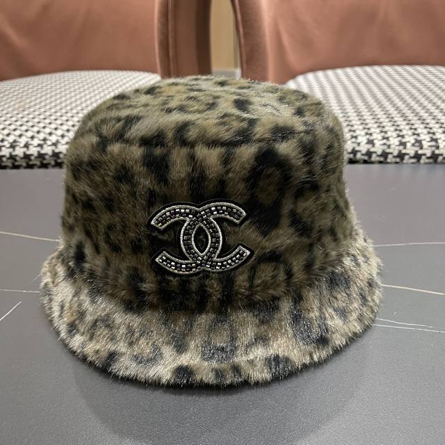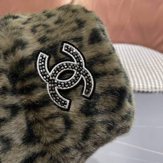 / Chanel Korean Style Leopard Print Plush Hat Women's Autumn and Winter New Fisher