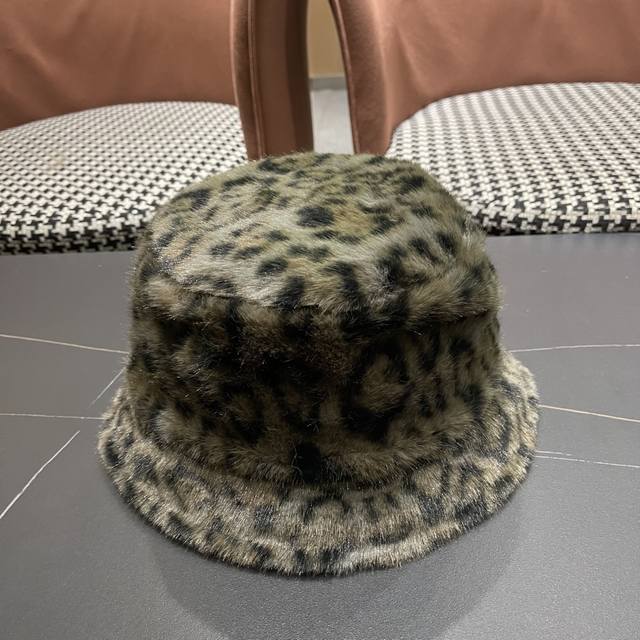 Chanel Korean Style Leopard Print Plush Hat Women's Autumn and Winter New Fisherman Hat, Warm and Thick, Retro Style Bucket Hat, Trendy