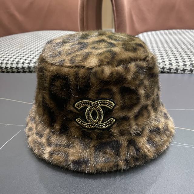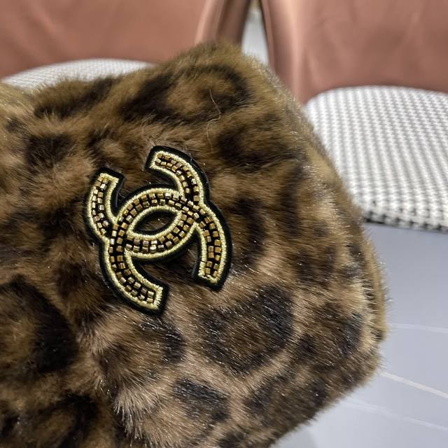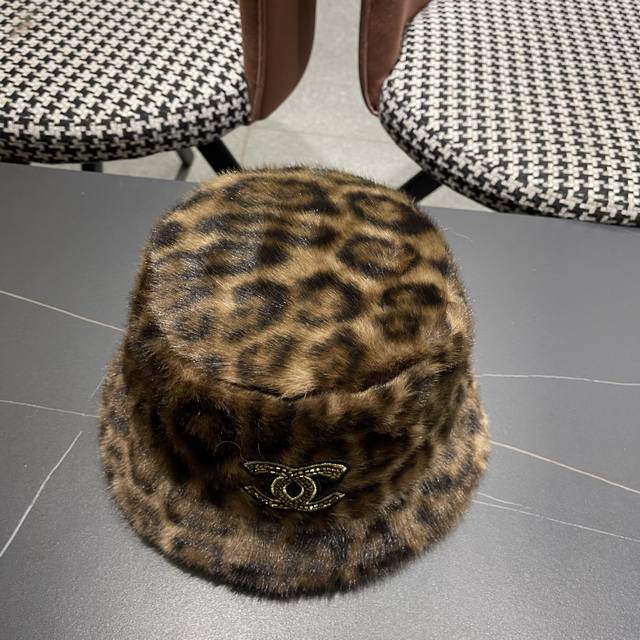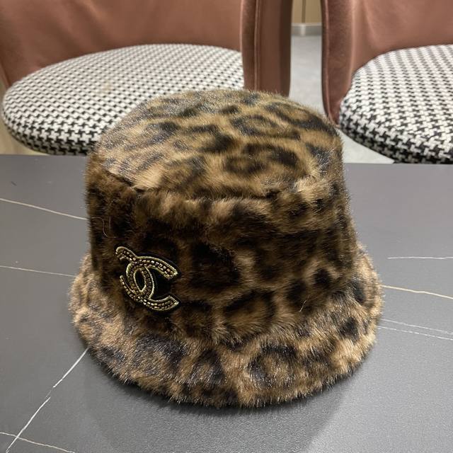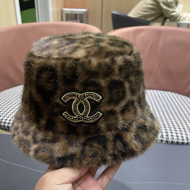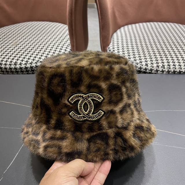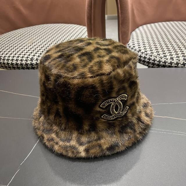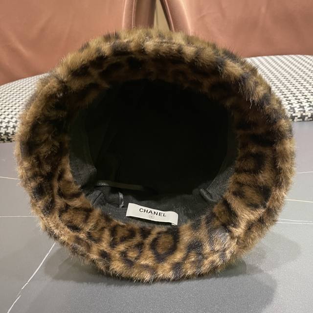 / Chanel Korean Style Leopard Print Plush Hat Women's Autumn and Winter New Fisher