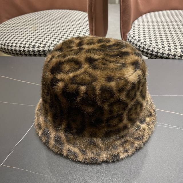 Chanel Korean Style Leopard Print Plush Hat Women's Autumn and Winter New Fisherman Hat, Warm and Thick, Retro Style Bucket Hat, Trendy