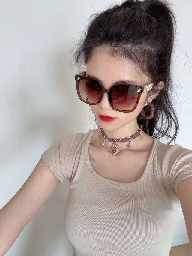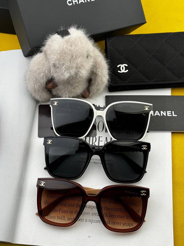 Chanel large-frame sunglasses. Classic square design, suitable for all face shapes. Whether paired with a coat or a dress, they are very elegant. Polarized lenses protect against UV rays. Model: Ch8899