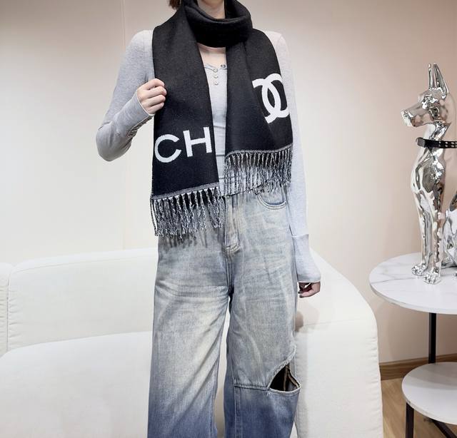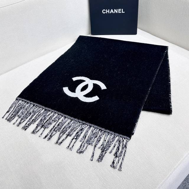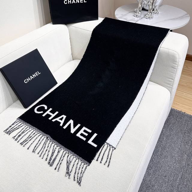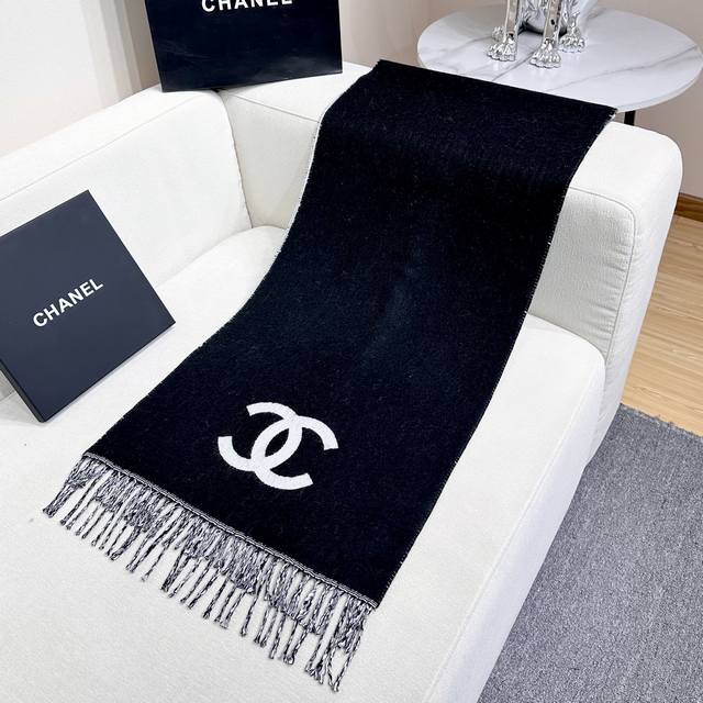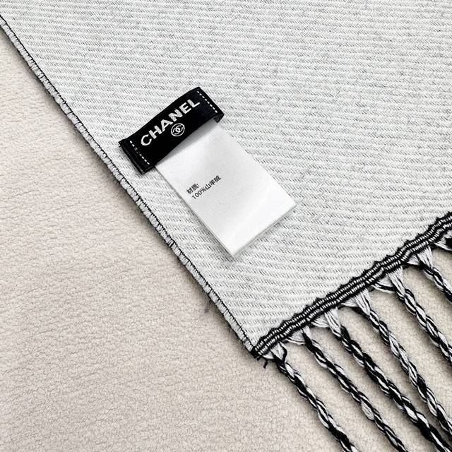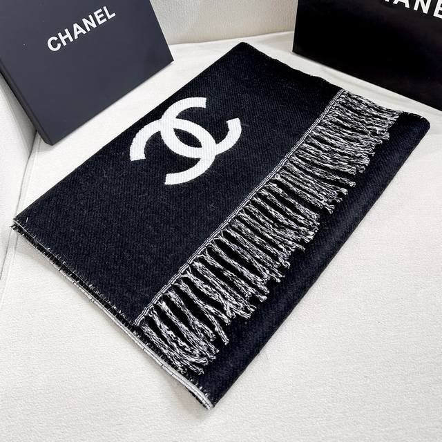 Chanel Limited Edition Premium Cashmere and Wool Blend Shawl - Sold out in boutiques this summer! I've been pre-ordering this minimalist double-C and English logo jacquard shawl; simple and elegant, with a delicate and soft feel, incredibly comfortable. Size: 44.6 x 168 cm (excluding tassels). Composition: 55% sheep's wool, 45% cashmere. Only one color available. Worth buying.