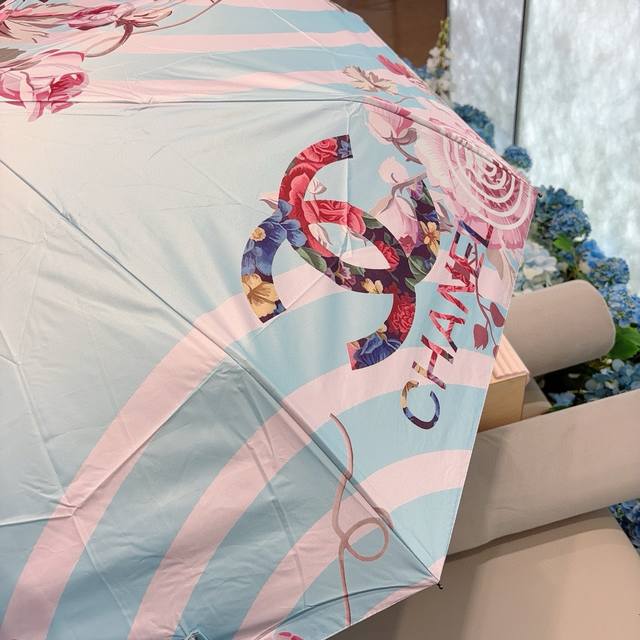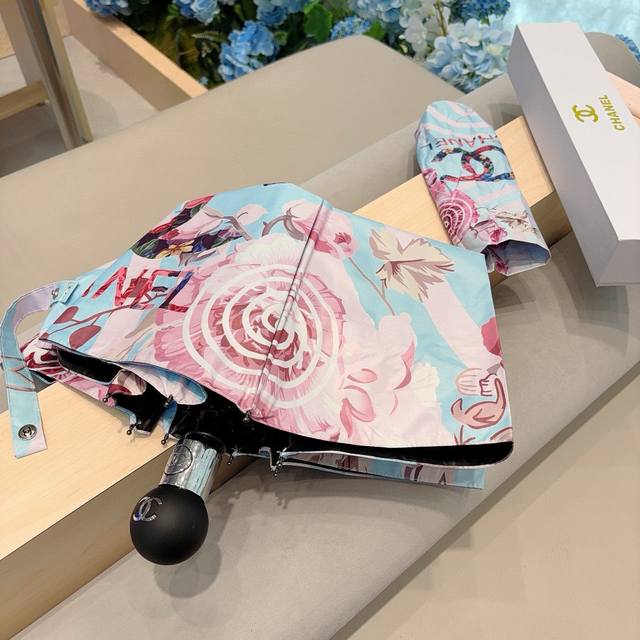 Chanel Lollipop Tri-Fold Automatic Folding Umbrella Made of Taiwan Imported UV Anti-UV Umbrella Fabric Original OEM Quality 2 Colors