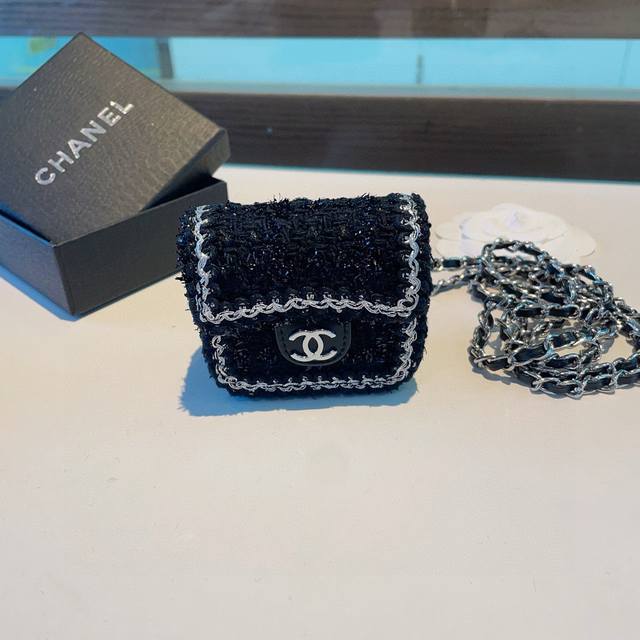 Chanel Mini Crossbody Bag, Tweed, Universal Headphone Bag, 1:1 Replica from Official Website. A stylish mini bag with a detachable chain strap that can be worn around the neck or as a bag charm. A universal Bluetooth headphone bag!