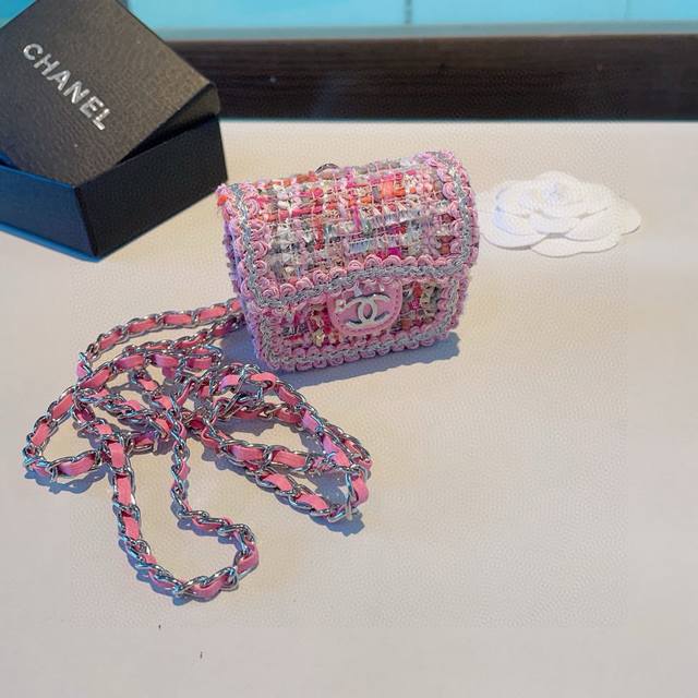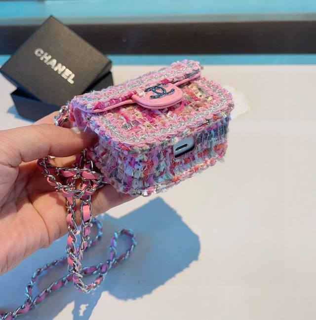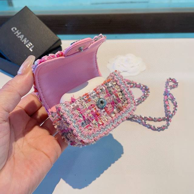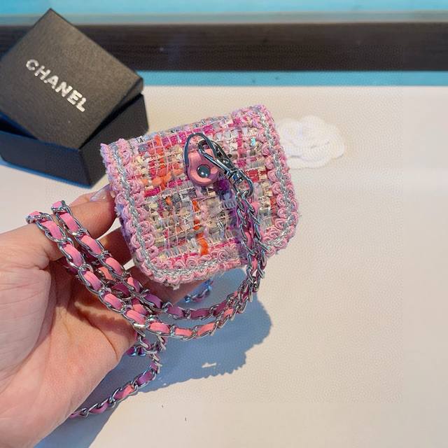 Chanel Mini Crossbody Bag, Tweed, Universal Headphone Bag, 1:1 Replica from Official Website. A stylish mini bag with a detachable chain strap that can be worn around the neck or as a bag charm. A universal Bluetooth headphone bag!