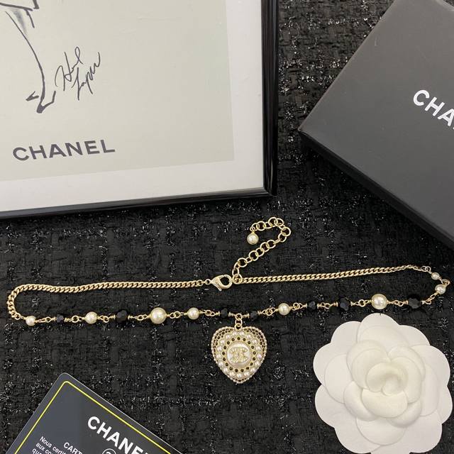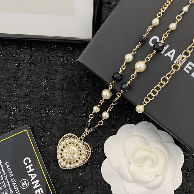 Chanel necklace hot-selling models are now on sale! Chanel 22A mysterious black glass pearl heart necklace, consistent Zp, brass texture
