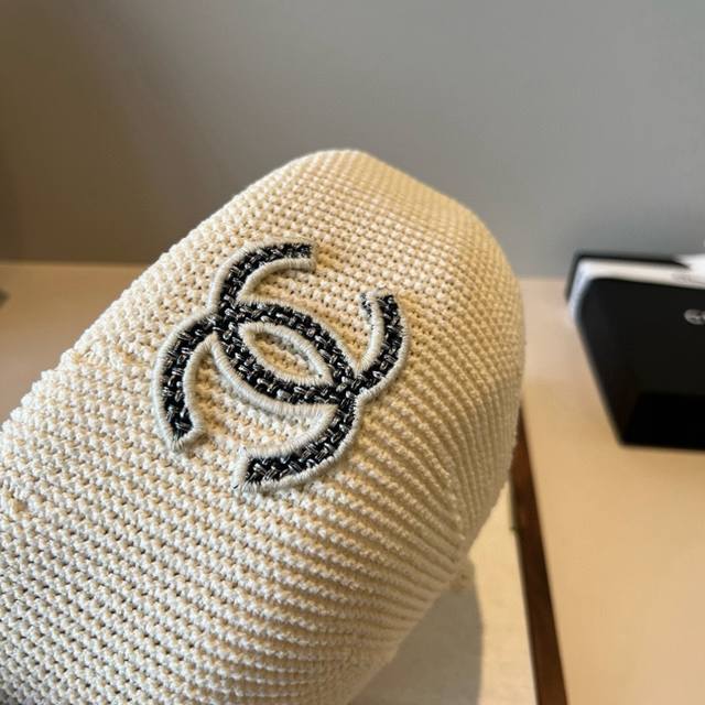Chanel Elegant Lady-Style Small Hat, Flat-Top Straw Hat, Head Circumference 57Cm