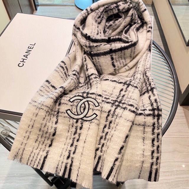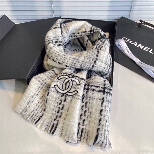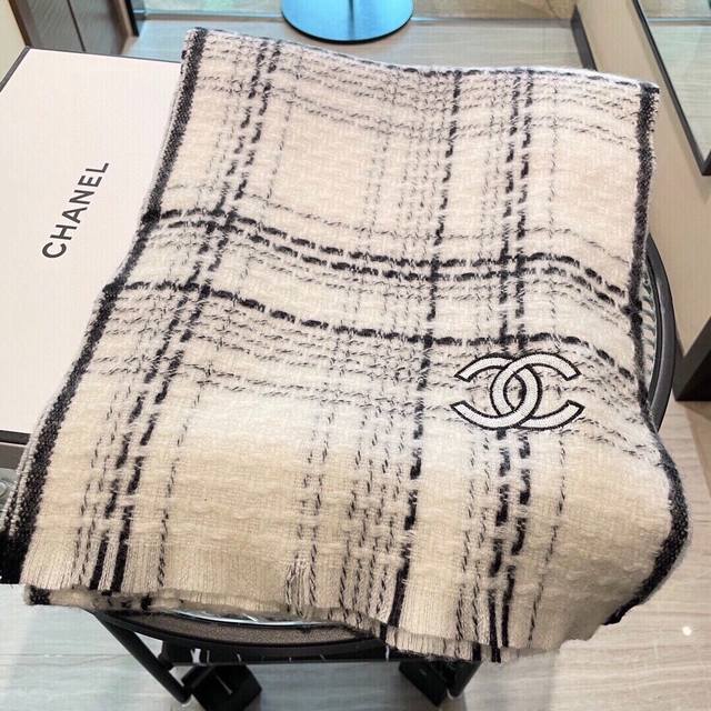 Chanel New Check Scarf/Shawl, Silver Thread Trim, Fashionable and Luxurious, Superior Quality, Perfect Gift or Personal Use, Exclusive Real Product Photos, What You See Is What You Get, Absolutely Perfect Colors, Top-Quality Goods, Don't Wait, Special Channel Goods, One Item Per Counts Down, Absolutely Top-Quality Goods, Every Detail is Like a Boutique 35*200cm 100% Cashmere Highly Recommended!
