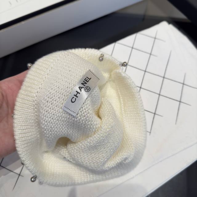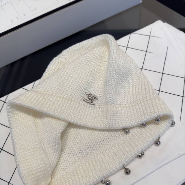 Chanel new wool hat for women winter cute fur ball pullover hat warm plus velvet