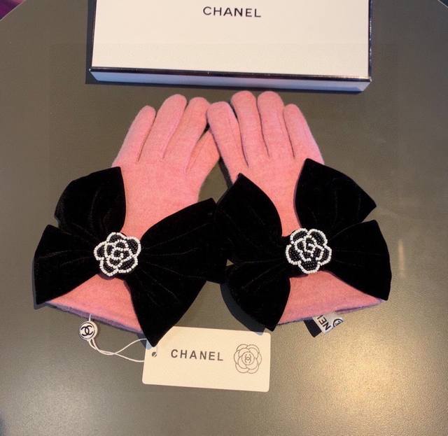 Chanel new wool gloves, beaded camellia + big bow fashionable gloves, autumn and winter warmth plus fleece lining, super cute bow, super comfortable and soft to wear, versatile! One size