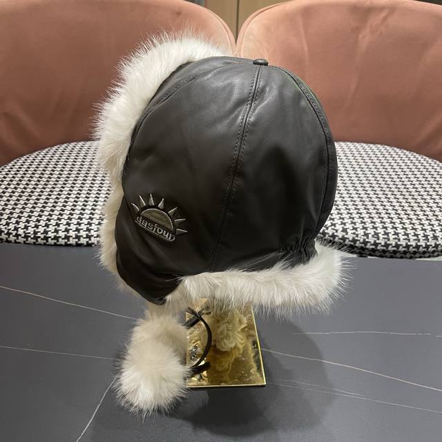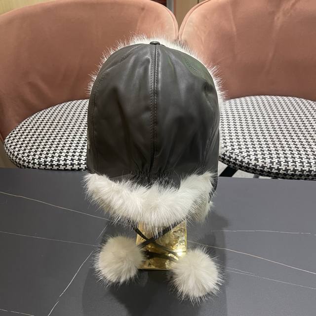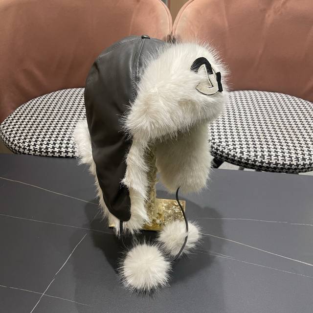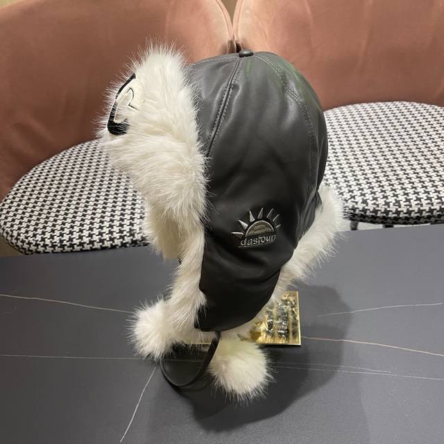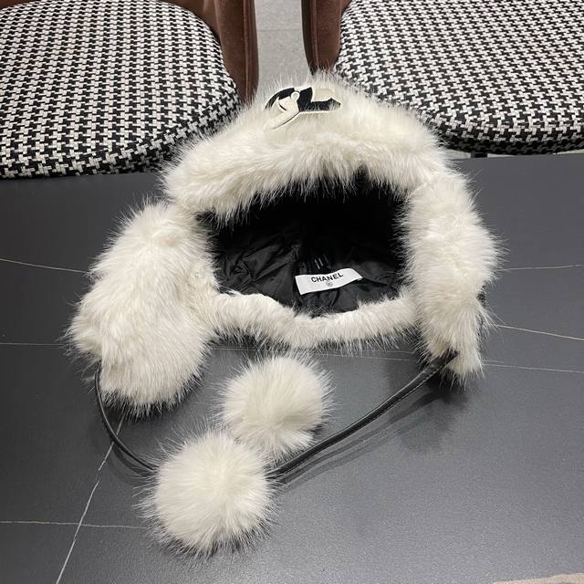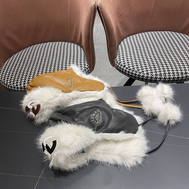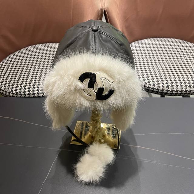 Chanel Northeast Hat Women's Winter PU Leather Thickened Plush Ski Hat Faux Fur Lei Feng Hat DDD