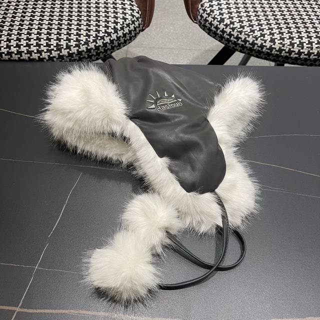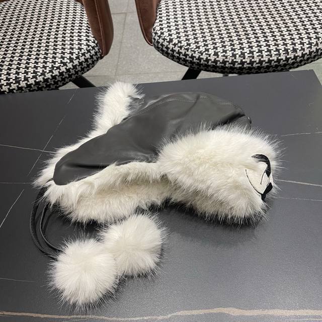 / Chanel Northeast Hat Women's Winter PU Leather Thickened Plush Ski Hat Faux Fur