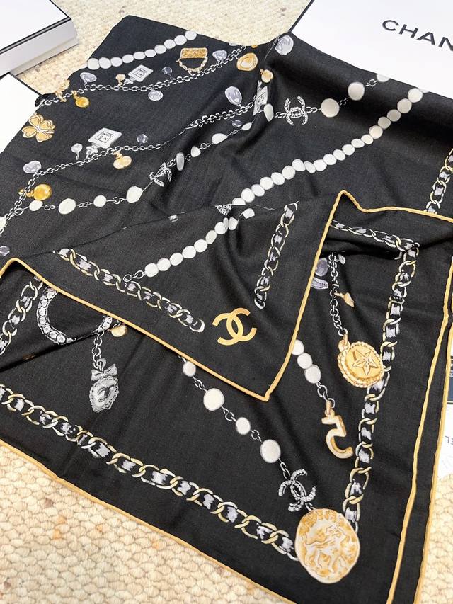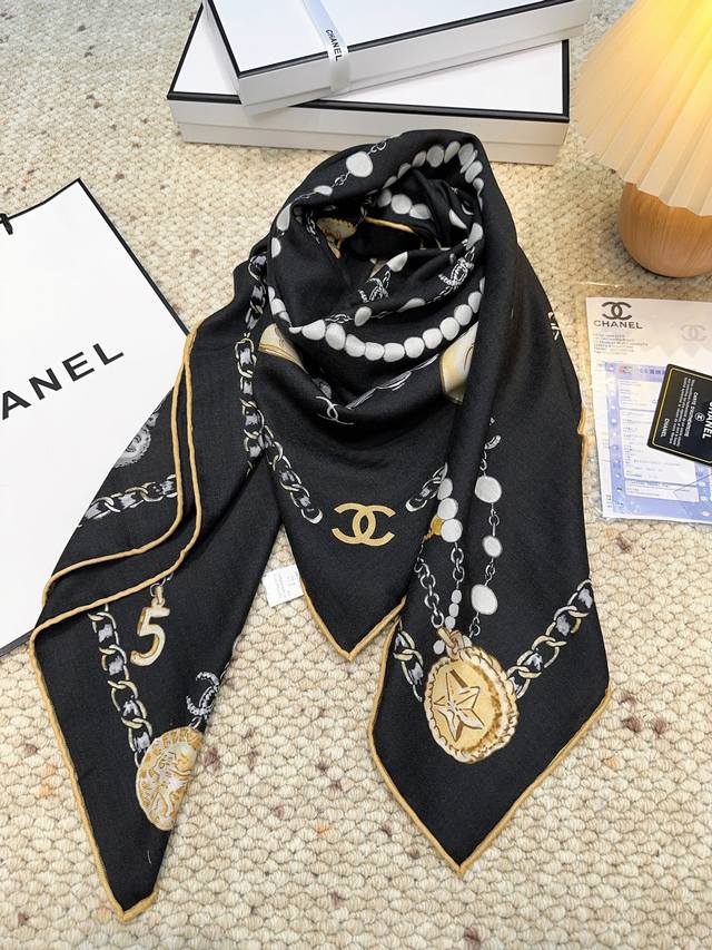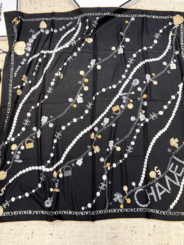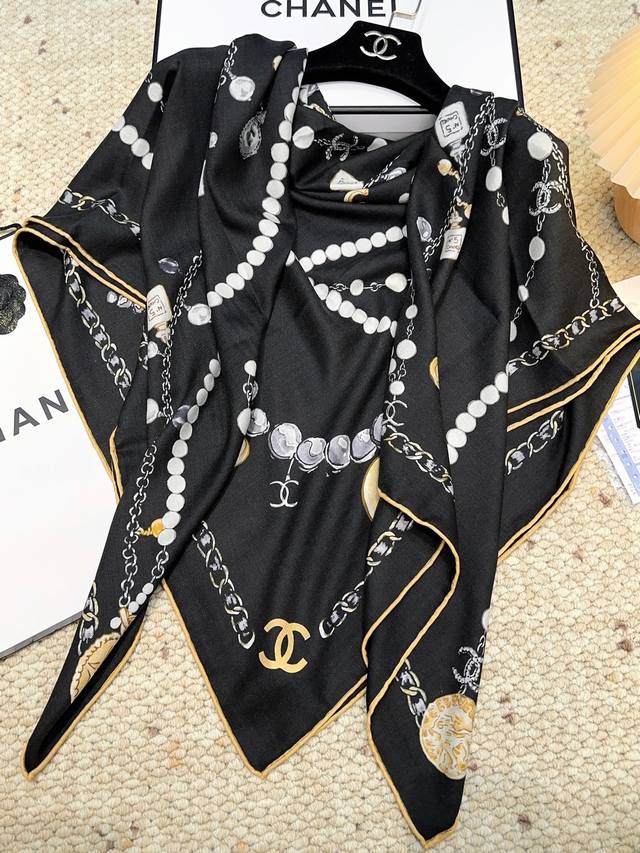 Chanel Pearl Necklace 140*140 New Arrival, Silk Velvet Style. Gentle and serene, the logo exudes elegance! The soft and smooth feel is truly comforting! New Chanel classic element silk cashmere scarf! Those in the know will fall in love at first sight. Its biggest advantage is: it's incredibly flattering! Stylish, feminine , and sophisticated, without being frivolous. Wearing this style gives you a super powerful aura. The overall effect is generous, appropriate, and classy. Velvet jacquard craftsmanship! A truly stunning design, available in two colors perfect for everyday wear! The actual product is beautiful! High-end silk, soft fabric, exquisite printing and dyeing, high-quality! The soft and smooth feel is incredibly comfortable. Suitable for all seasons! Size: 140*140cm. Silk cashmere handmade scarf, two colors.