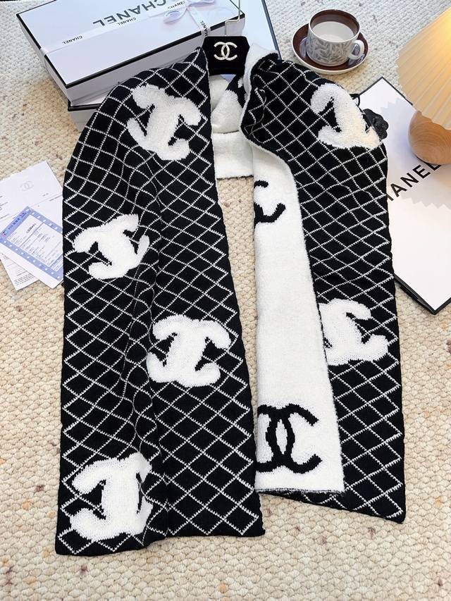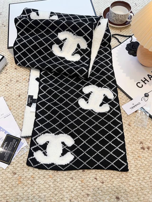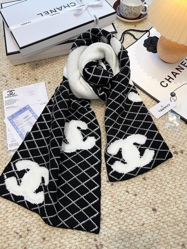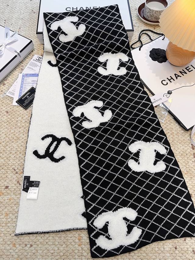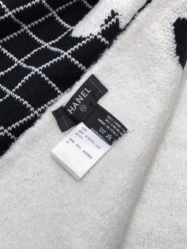 Chanel quilted cashmere scarf, high-end custom fabric, 1:1 replica, soft and fluffy like marshmallow, thick and warm, with a double-sided black and white color scheme, exuding a high-end feel. This Chanel quilted cashmere scarf is truly a classic! Size 35:190! Material 90% wool 10% cashmere.